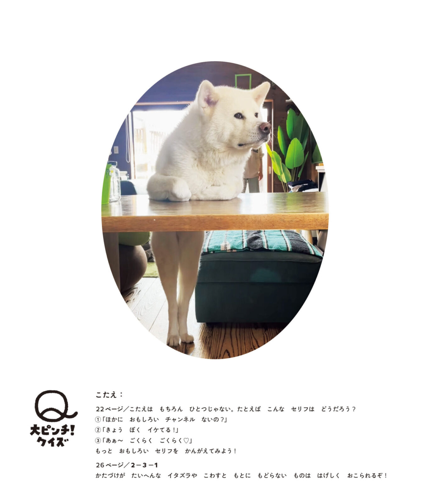 『大ピンチずかん』でお馴染みの「大ピンチ!クイズ」や「さらに!」と続くおもしろポイントなど、シリーズファンに嬉しい小さいしかけがいっぱい。そして、子どもだけでなく、犬好きのみなさんにもきゅんとしたり、思わず笑ったり、共感できるポイントが満載です。